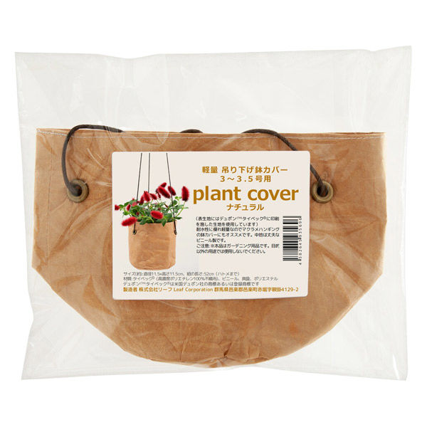 | 商品の特徴 | ●耐久性、耐水性に優れたタイベック(R)を使用した吊り下げ鉢カバーです。●軽量なので重さを気にせず吊るすことができ、空間を立体的に楽しめます。●紙のような質感が空間を彩ります。●軽量で破れにくく、中地には丈夫なビニールを使用しているため、繰り返し使用できます。●3~3.5号ポットの市販苗をそのまま入れることもできます。●鉢の高さに合わせて上部を折り曲げて調節できます。●使用しない際は折りたたんで収納できます。 | ||