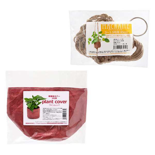 | メーカー名 | リーフ | セット内容 | 鉢カバー 軽量鉢カバー 3~3.5号用 ワインレッド、マクラメプランツハンガー 3~3.5号用 85cm |