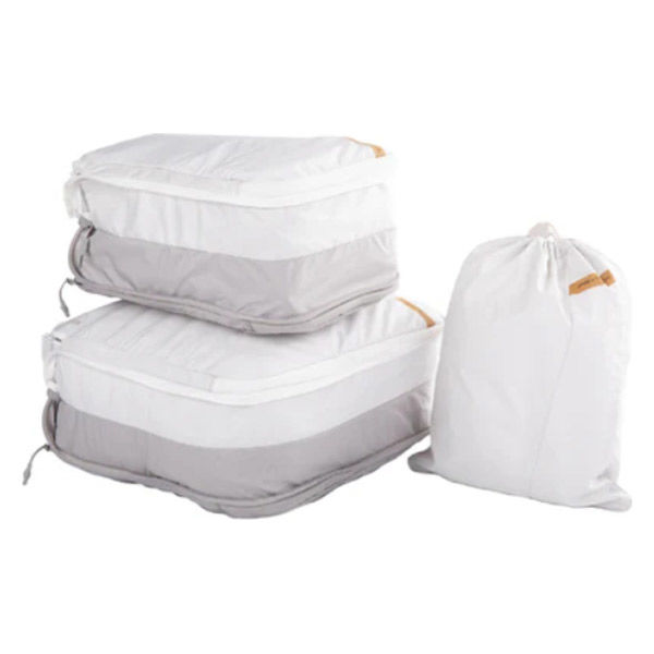 | 商品の特徴 | ●S・M・L の 3 サイズのオーガナイザーバッグで構成 ●2色のレイヤーデザインで使用前と使用後の衣類を分けて収納可能 ●ジッパー部分で圧縮でき、衣類をコンパクトにまとめられる ●シワになりにくいナイロン素材を採用 ●超軽量生地で持ち運びが快適 ●旅行や出張時の荷物整理に最適 | ||