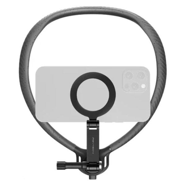 MagSafe対応の強力磁力でスマホやアクションカメラを固定し、POV視点撮影に最適なネックマウント