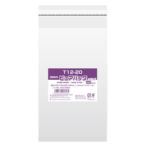 SWAN ピュアパック OPP袋 T12-20 幅120×高200mm 透明封筒 1袋(100枚入)006798568 シモジマ