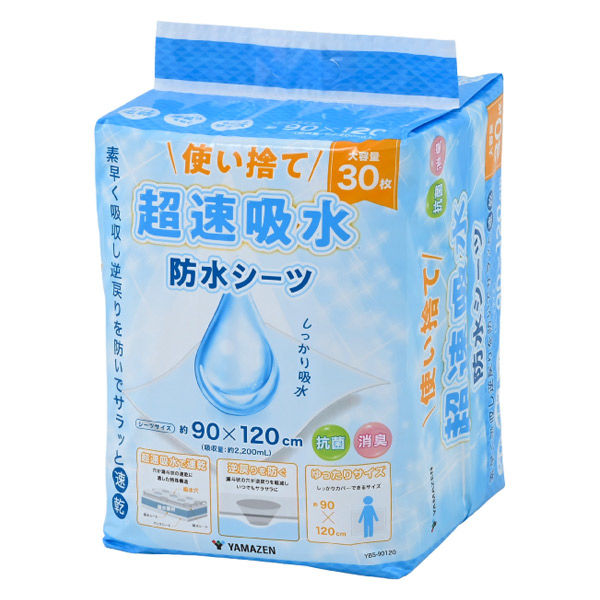 YAMAZEN 使い捨て防水シーツ 90×120cm 大容量30枚入 超速吸水 速乾 抗菌・消臭 YBSー90120