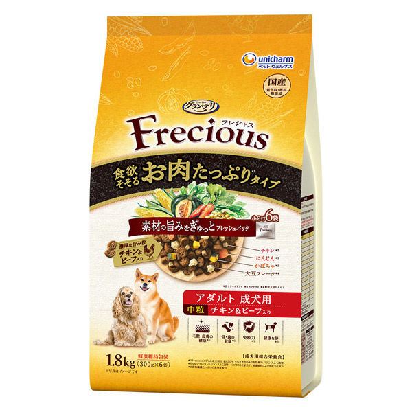 グラン・デリ フレシャス アダルト 成犬用 お肉たっぷり チキン&ビーフ 中粒 国産 1.8kg(300g×6袋)1個 ユニ・チャーム ドッグフード