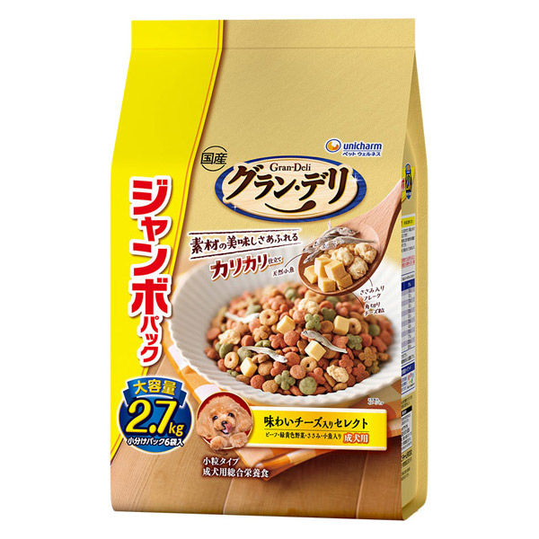 グラン・デリ カリカリ仕立て 成犬用 味わいチーズ入りセレクト ジャンボパック 2.7kg(小分けパック6袋入)1個 ユニ・チャーム ドッグフード