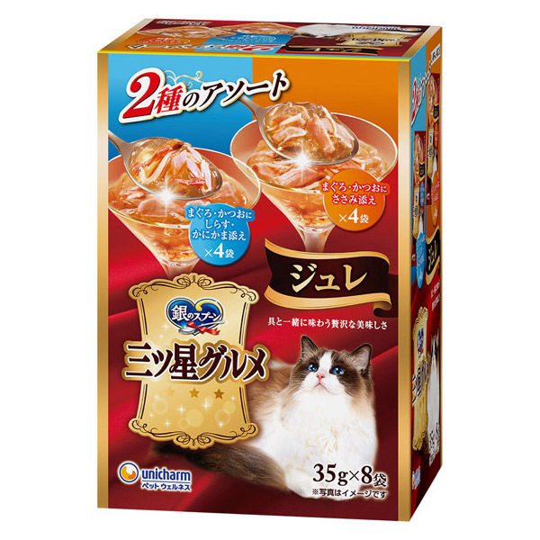 銀のスプーン 三ツ星グルメ パウチジュレ 2種のアソート まぐろ・かつおにしらす・かにかま・ささみ(35g×8袋)1個 キャットフード ウェット