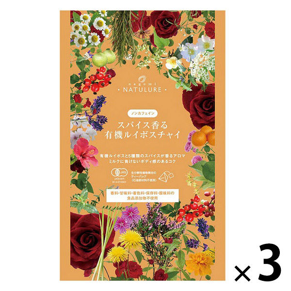- 有機ルイボス(南アフリカ)、有機カルダモン(グァテマラ)、有機シナモン(スリランカ)、有機クローブ(インドネシア)、有機ジンジャー(ベトナム)、有機フェンネル(エジプト)
