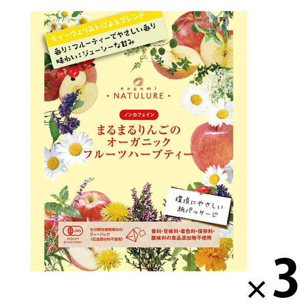 | 商品の特徴 | 香料や甘味料、保存料を一切使わず、フルーツの純粋な味わいをお愉しみいただける逸品です。有機栽培のりんごを皮ごとまるまる使用したジューシーでフルーティーな味わいに、カモミールの自然な甘みとやさしい香りが広がる一杯です。リラックスタイムにもおすすめです。 | ||