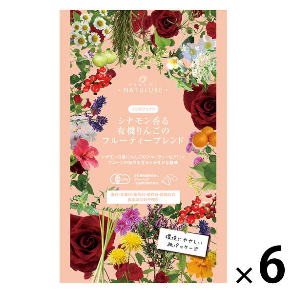 - 有機アップルピース(オーストリア)、有機ローズヒップ(チリ)、有機ハイビスカス(エジプト)、有機エルダーフラワー(アルバニア)、有機シナモン(スリランカ)