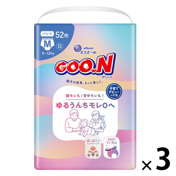 グーン おむつ パンツ Mサイズ(6~12kg)1セット(52枚入×3パック)ゆるうんちモレ0へ 大王製紙
