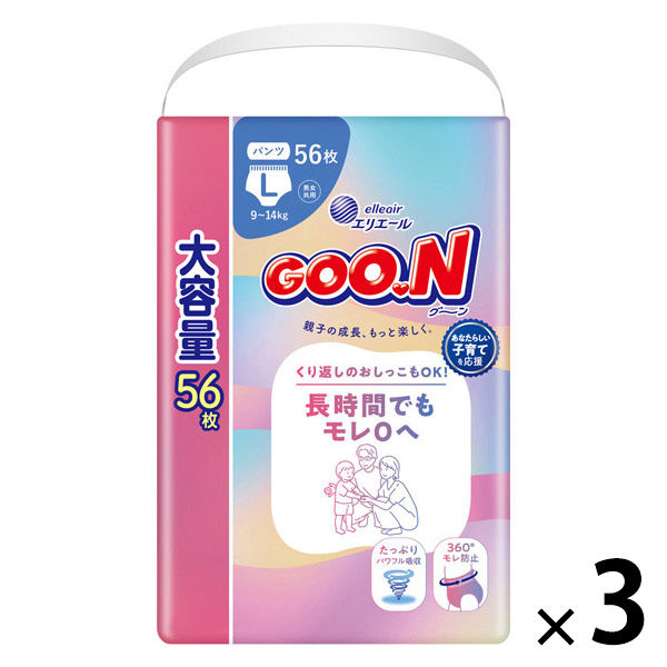 グーン おむつ パンツ Lサイズ(9~14kg)1セット(56枚入×3パック)大容量 ウルトラジャンボ 長時間でもモレ0へ 大王製紙