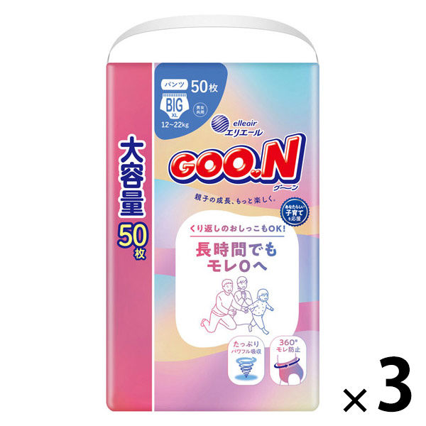 グーン おむつ パンツ BIG(12~22kg)1セット(50枚入×3パック)大容量 ウルトラジャンボ 長時間でもモレ0へ 大王製紙