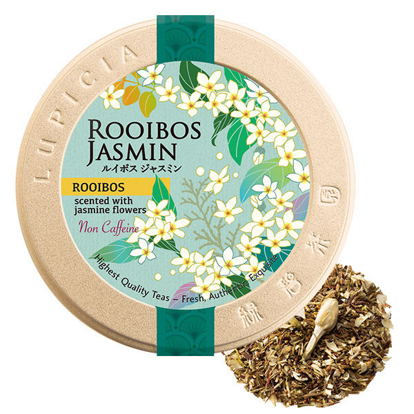 | 商品の特徴 | ジャスミンの花ですっきりした飲み心地のグリーンルイボスに香りづけ。おやすみ前などカフェインを控えたい時に、華やかな香りに包まれるティータイムを。 | ||