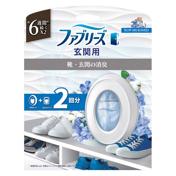 | 商品の特徴 | 靴・玄関の消臭フレンチ・リネン & ジャスミンの香り。消臭効果は約6週間持続します(使用状況による)。*写真はイメージです。実際の製品とは異なります。*1使用状況による。 玄関用消臭剤 | ||
