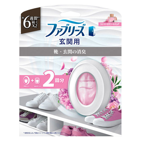 | 商品の特徴 | 靴・玄関の消臭スイート・ピオニー & ミュゲの香り。消臭効果は約6週間持続します(使用状況による)。写真はイメージです。実際の製品とは異なります。*1 使用状況による。 玄関用消臭剤 | ||