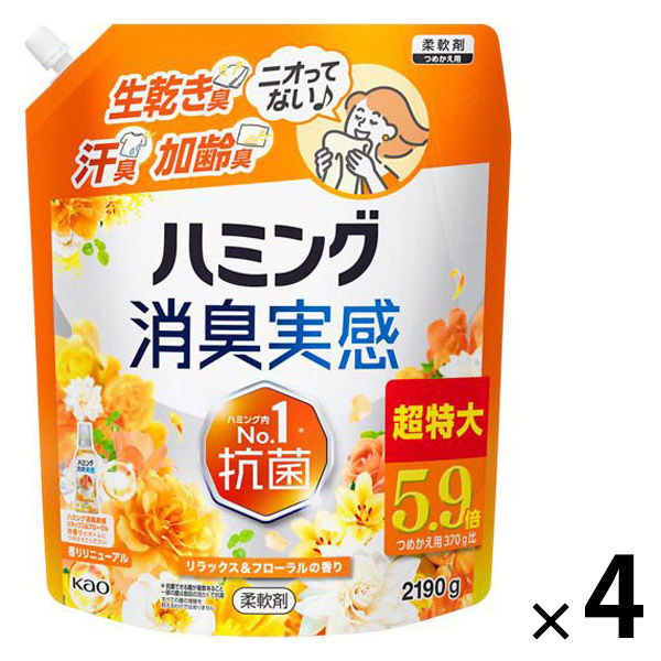 ハミング消臭実感 リラックス&フローラルの香り 超特大 詰め替え 2190g 1セット(1個×4) 柔軟剤 花王