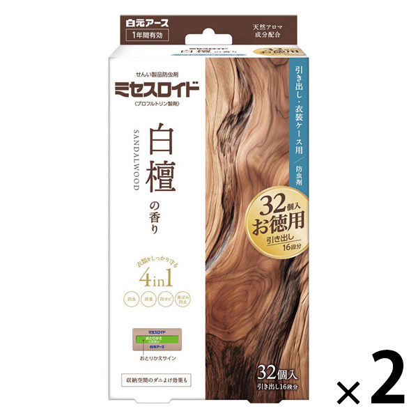 ミセスロイド 引き出し・衣装ケース用 1年防虫 白檀の香り 1セット(1箱(32個入)×2) お徳用 白元アース
