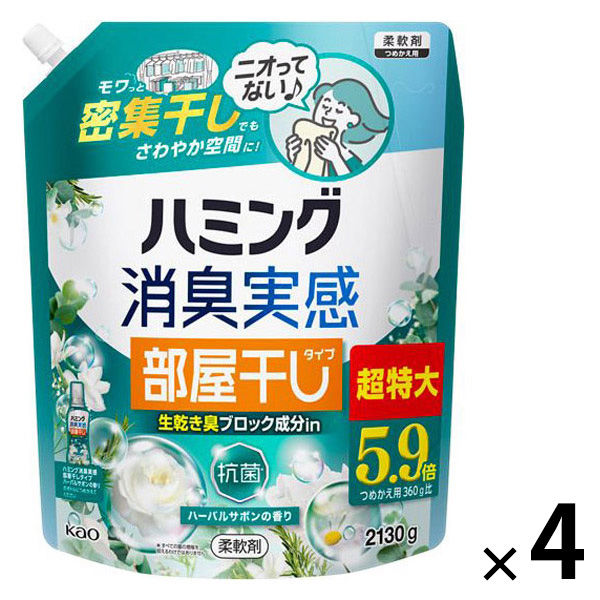 ハミング消臭実感 部屋干し ハーバルサボン 超特大 詰め替え 2130g 1セット(1個×4) 柔軟剤 花王