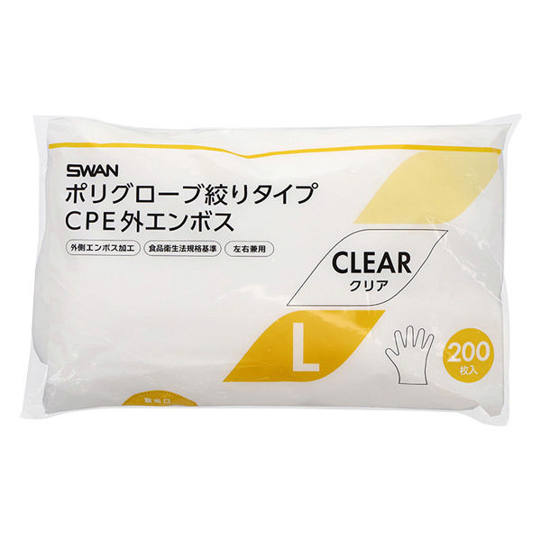 シモジマ 使い捨て手袋 SポリグローブCPE外EB絞り Lクリア 200枚 004526057 1セット(1袋(200枚入)×30)(直送品)