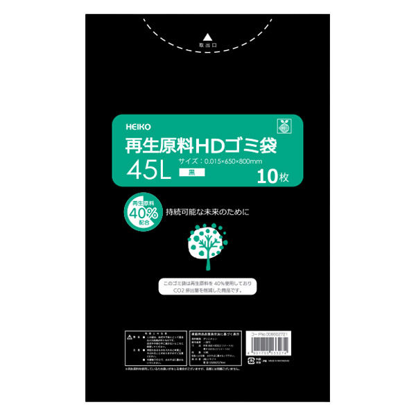 | 商品の特徴 | 再生原料を40%配合したグリーン購入法適合商品です。廃棄されるはずのポリエチレンを原料に利用し、CO2の排出量を削減しております。再生原料を使用しているため、臭いを生じる場合がありますが品質には問題ありません。 | ||