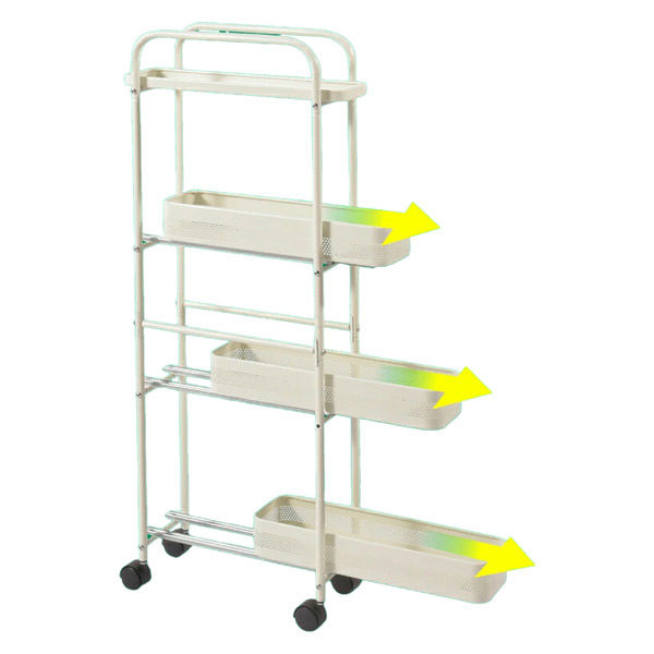 | 商品の特徴 | 傾いても滑り落ちない設計の隙間収納用ラックです。暮らしの隙間にぴったり馴染む収納です。移動も楽々です。 | ||