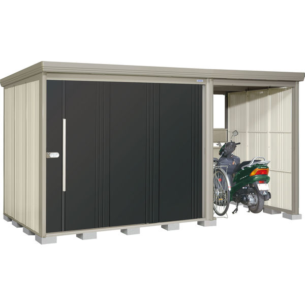 | 商品の特徴 | 丈夫で安心の柱構造・頑丈設計の駐輪スペース付き物置です。扉は連動吊り戸方式だから開閉が「軽い」「静か」「スムーズ」です。物置と駐輪スペースは左右を選んで設置できます。 | ||