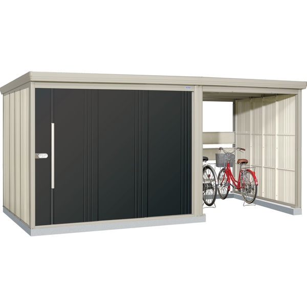 | 商品の特徴 | 丈夫で安心の柱構造・頑丈設計の駐輪スペース付き物置です。扉は連動吊り戸方式だから開閉が「軽い」「静か」「スムーズ」です。物置と駐輪スペースは左右を選んで設置できます。 | ||
