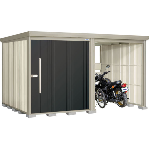| 商品の特徴 | 丈夫で安心の柱構造・頑丈設計の駐輪スペース付き物置です。扉は連動吊り戸方式だから開閉が「軽い」「静か」「スムーズ」です。物置と駐輪スペースは左右を選んで設置できます。 | ||