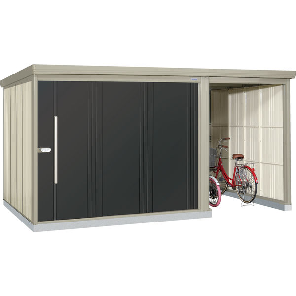 | 商品の特徴 | 丈夫で安心の柱構造・頑丈設計の駐輪スペース付き物置です。扉は連動吊り戸方式だから開閉が「軽い」「静か」「スムーズ」です。物置と駐輪スペースは左右を選んで設置できます。 | ||