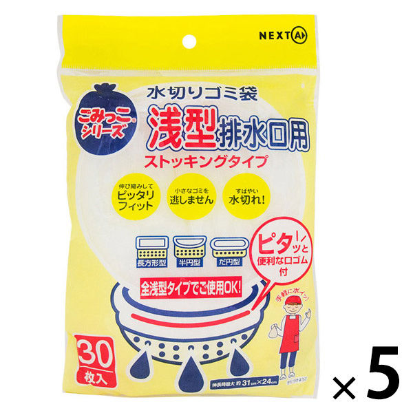 水切りゴミ袋 浅型 排水口用 ストッキングタイプ 1セット(1袋(30枚入)×5)ネクスタ