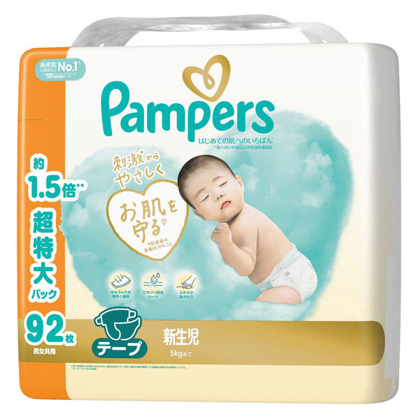 パンパース おむつ テープ 新生児サイズ(~5kgまで) 1パック(92枚入) 超特大 メガジャンボ はじめての肌へのいちばん P&G
