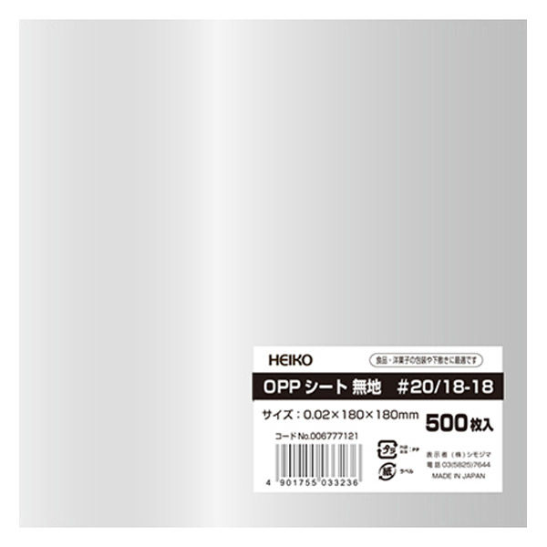 シモジマ 食品用フィルム OPPシート 180×180 #20 1袋(500枚入) 006777121