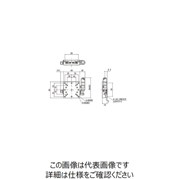 | 備考 | 【返品について】お客様のご都合による返品はお受けできません。●※マイクロメータヘッドを固定している部品やマイクロメータヘッドの種類によりステージ上面から突出している場合があります。●※ステージに取り付ける試料の形状により、固定出来ない場合や移動量が確保出来ない場合がありますのでご注意ください。 | ||