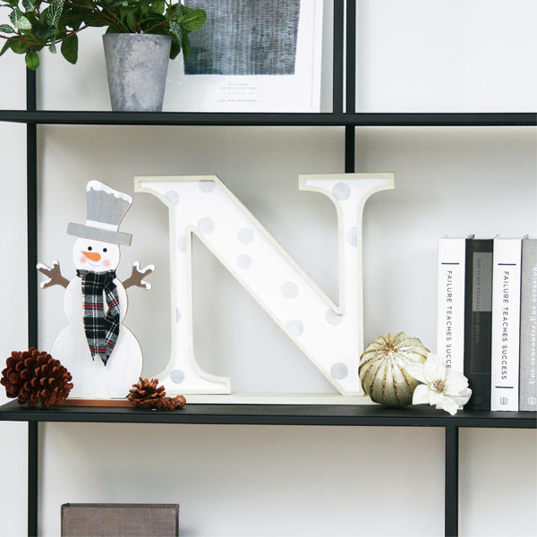 クリスマスのデコレーションが施されたアルファベットベース。大きめサイズでディスプレイのアクセントになります。