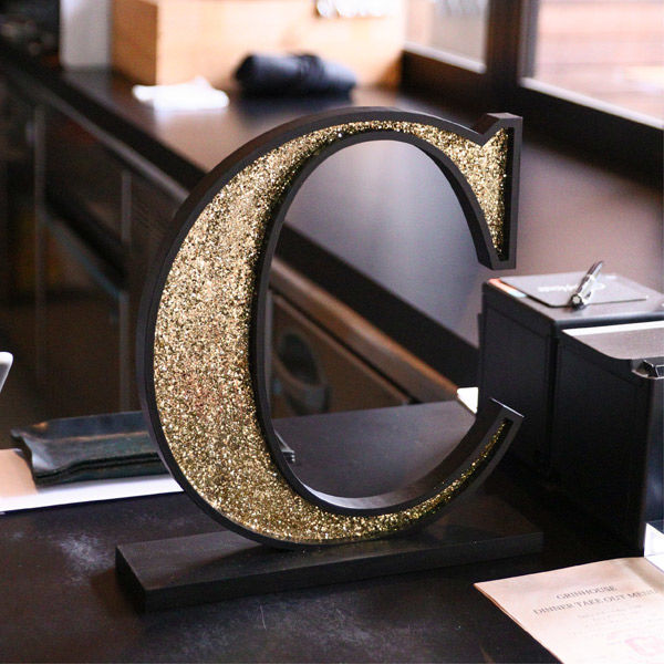 クリスマスのデコレーションが施されたアルファベットベース。大きめサイズでディスプレイのアクセントになります。