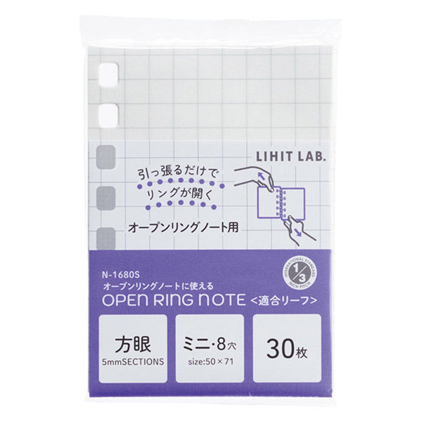 リヒトラブ オープンリングノート<適合リーフ> ミニ ノート 方眼罫 替えリーフ リフィル N1680S 1組(直送品)