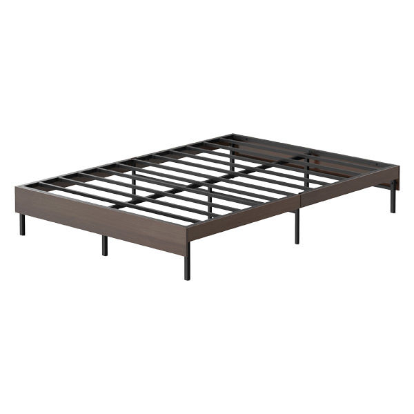 アイリスオーヤマ ウッドスチールベッド ダブル 幅1400×奥行1974×高さ300mm ブラック/ウォールナット 1台(直送品)