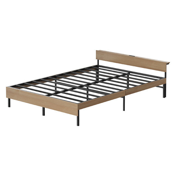 アイリスオーヤマ ウッドスチールベッド 宮付き ダブル 幅1400×奥行2047×高さ541mm ブラック/ナチュラル 1台(直送品)