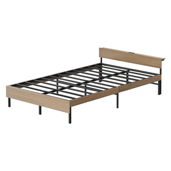 アイリスオーヤマ ウッドスチールベッド 宮付き セミダブル 幅1200×奥行2047×高さ541mm ブラック/ナチュラル 1台(直送品)