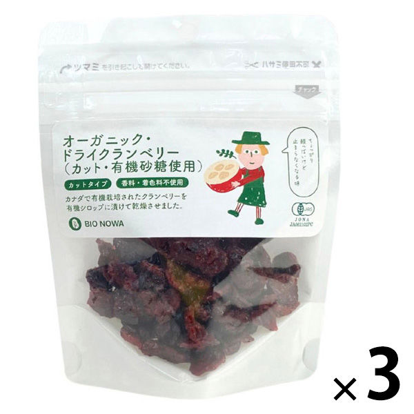 有機素材 ドライフルーツ 小袋 BIONOWA オーガニック ドライクランベリー(カット・有機砂糖使用) 1セット(1個×3)