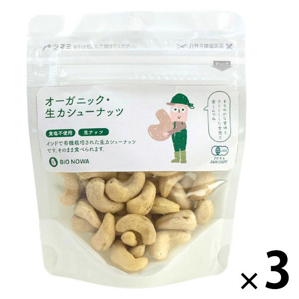 有機素材 ナッツ チャック付 小袋 BIONOWA オーガニック 生カシューナッツ 1セット(1個×3)