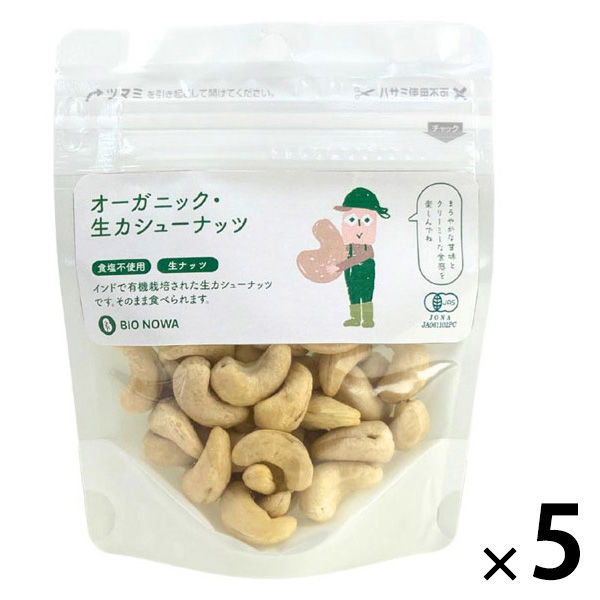 有機素材 ナッツ チャック付 小袋 BIONOWA オーガニック 生カシューナッツ 1セット(1個×5)
