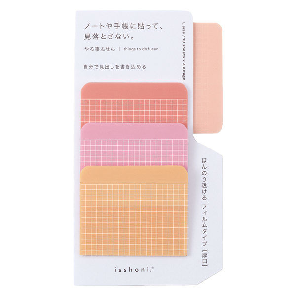 | 商品の特徴 | ノートや手帳からインデックスのように見せられるふせん。見出しが書き込めるタイプ。ふせんが隠れてしまわないので大切なメモやタスクを見逃しません。PETでできた折れにくい厚口のふせんです。 | ||
