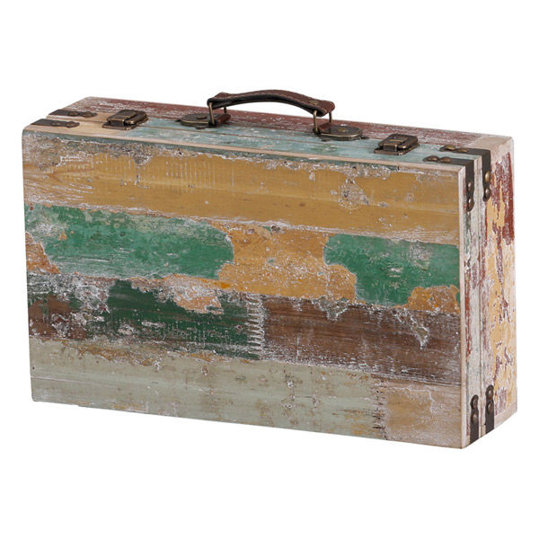 - 一緒に旅をしてきたかのようなトランクをイメージした、アンティーク風の木製ボックス。 使い込まれたような質感と、アクセントになる金具やカラーリングがポイント。 落ち着いた木の色合いとヴィンテージ感あふれるデザインは、お部屋に置くだけで格調高いアンティークなムードを演出します。 英国風、シャビーシック、インダストリアルなど、様々なインテリアスタイルに馴染みます。 ガーデンインテリアにもおすすめです。