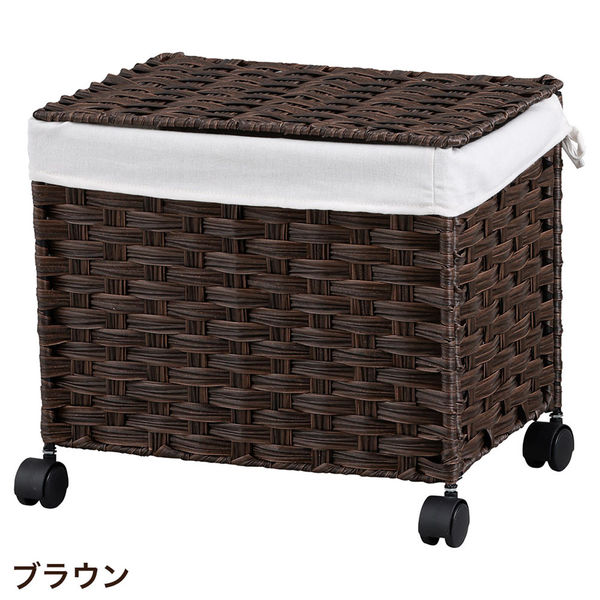 | 特長 | 耐久性に優れたPE素材を丁寧に編み込んで、ナチュラルで繊細なデザインに仕上げた収納カート。 折りたたみが可能な上に、キャスター付きで移動も簡単だから、掃除や模様替えの際にも便利です。 衣服やおもちゃ、ごちゃつきがちなものをさっと整理整頓。蓋つきなので、スッキリと見えます。 落ち着いた色合いで、どんなお部屋にもしっくりときます。 | カラー | ブラウン |