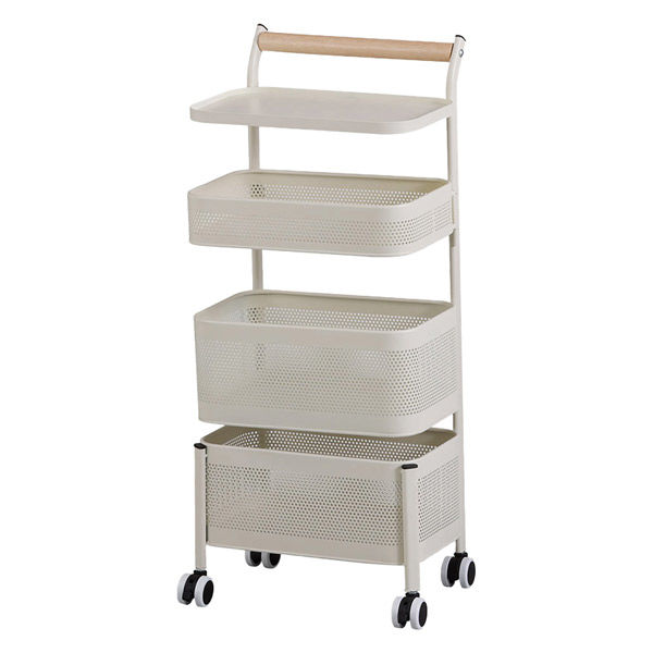 - 木製ハンドルが北欧風でかわいいトローリーラック。 キャスター付きで必要な場所まで簡単に移動可能です。 2段目と3段目のバスケットはスイングし、必要なアイテムを取り出しやすいデザイン。 おもちゃや文房具の整理整頓や、脱衣所において着替えやタオルストックを入れておいたり、メッシュバスケットなのでキッチンでの野菜保存にもおすすめです。
