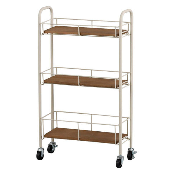 | 商品の特徴 | 幅を取らない設計ながら、3段の収納スペースで日用品や小物をたっぷり収納。 キャスター付きで移動もラクラクで、狭いスペースにもすっきり収まります。 カフェ風や北欧スタイルのインテリアにもぴったりのデザインです。 | ||