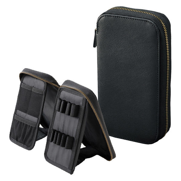 | 商品の特徴 | 【特長】自立ができて狭いデスクでも場所を取りません。左側のメッシュポケットは上部にシャープ替芯、下部に消しゴムやふせんが収納出来ます。ペンを傷から守るクッションフラップが付いてます。ペンホルダーについているクッションループはペンを隠さず保護ができます。【収容量】ペンホルダーには最大4本収納可能。 | ||