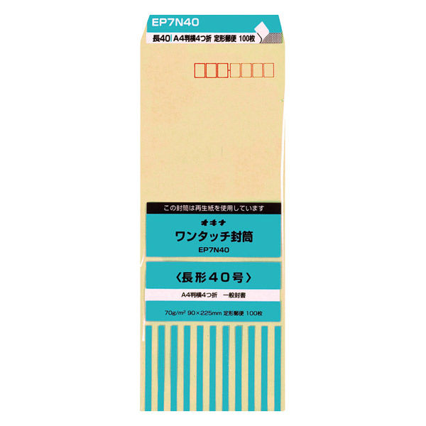 商品の特徴 ★ワンタッチのり付★規格:長40★寸法:90×225mm★100枚パック入り