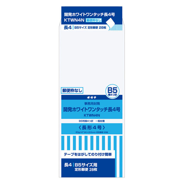 商品の特徴 ★規格:長4★寸法:90×205mm★郵便枠なし★ワンタッチのり付★28枚入り
