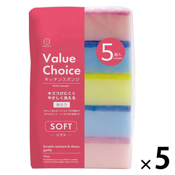 キッチンスポンジ バリューチョイス ソフトスポンジ 3色アソート 1セット(1パック(5個入)×5)小久保工業所